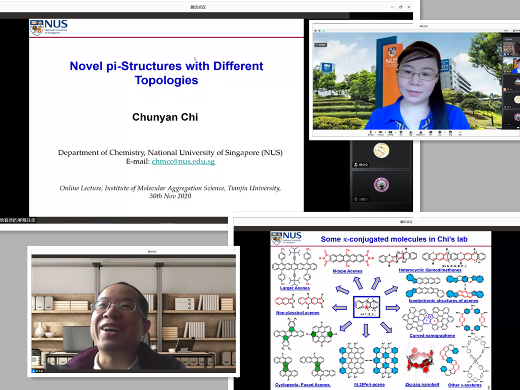 11月30日,我院大师面对面系列活动迎来本年度第18位重量嘉宾,来自新加坡国立大学化学系副教授池春彦老师以“Novel pi-Structures with Different Topologies”为题目,围绕具有不同拓扑结构的新型π共轭化学材料进行了精彩的学术报告。院长李振主持报告,校内外70余人线上聆听了讲座。