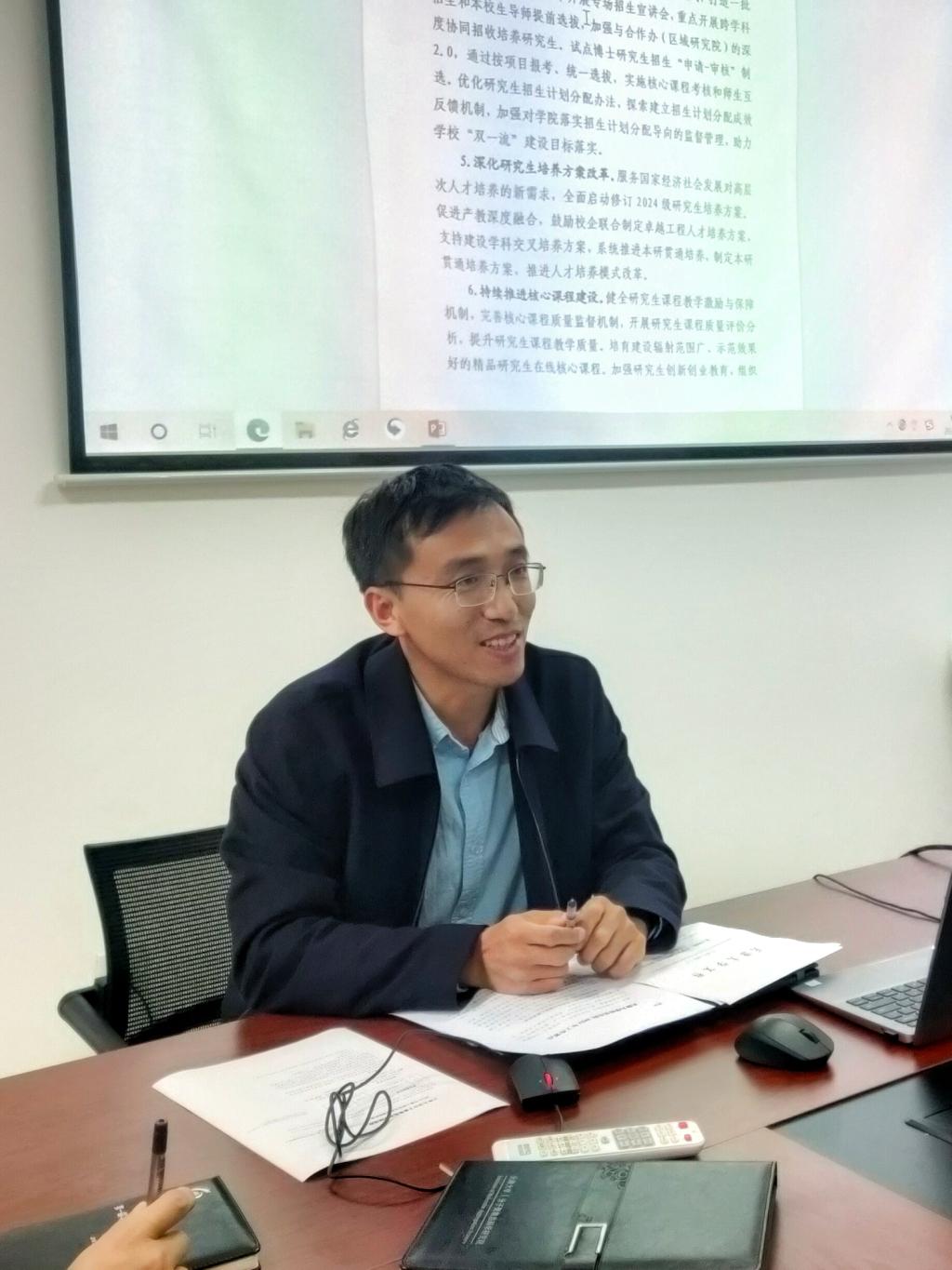 会上,李立强副院长结合自身研究生培养工作,为学院全体研究生导师积极分享研究生育人指导经验。他指出,培养学生要注重导师有温情、学生有收获,要允许学生有失误、引导学生在“犯错”中不断成长,要从学生的角度出发、充分调动学生积极性,做到用心指导、教学相长。