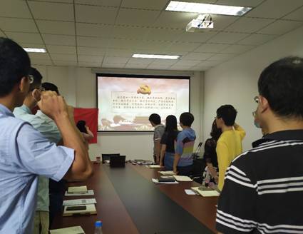 全体党员佩戴党徽,在朱文珺同志的带领下重温入党誓词,面向党旗进行了庄严宣誓,铿锵有力的宣誓,表达了党员教师们对党最诚挚的热爱,最坚定的信念与忠诚。
