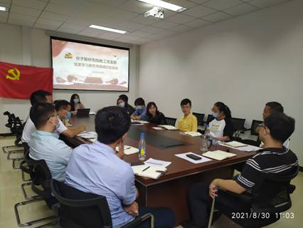 为进一步深化党史学习教育,贯彻落实习近平总书记在庆祝中国共产党成立100周年大会上的重要讲话精神,深入学习党的光辉历史,汲取砥砺奋进的精神力量,按照学校《关于召开党史学习教育专题组织生活会的通知》要求,8月30日上午,分子聚集态科学研究院教工党支部召开党史学习教育专题组织生活会,会议由党支部书记朱文珺同志主持,院长李振列席并做督导讲话。
