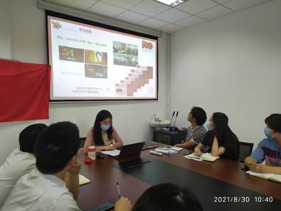 朱文珺代表教工党支部总结了2021年上半年党史学习教育的开展情况,并从党史学习教育方面、为民服务方面以及力戒形式主义和官僚主义方面剖析了党支部存在的不足以及努力的方向,强调支部党员同志要继续加强党史学习教育,要在学、思、践、悟中坚定理想信念,要坚持实践导向,切实做到学史力行、知行合一,将党史学习教育与推进实际工作相结合。