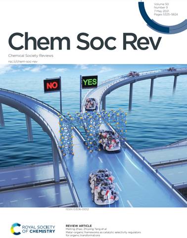 近日,天津大学赵美廷教授课题组联合国家纳米科学中心唐智勇研究员课题组,在化学领域著名期刊Chemical Society Reviews发表综述论文(Chem. Soc. Rev., 2021,50, 5366-5396),总结了如何利用MOF材料的金属节点、有机配体以及孔道环境调控有机催化反应的选择性,包括尺寸选择性、形状选择性、化学选择性、区域选择性和立体选择性等。并被编辑选为当期的封面论文(Front Cover)。文章第一单位为分子聚集态科学研究院,作者为课题组的助研郭俊和秦雨田,以及国家纳米科学中心的朱颜飞、张小飞和隆昶,通讯联系人为赵美廷教授和唐智勇研究员。